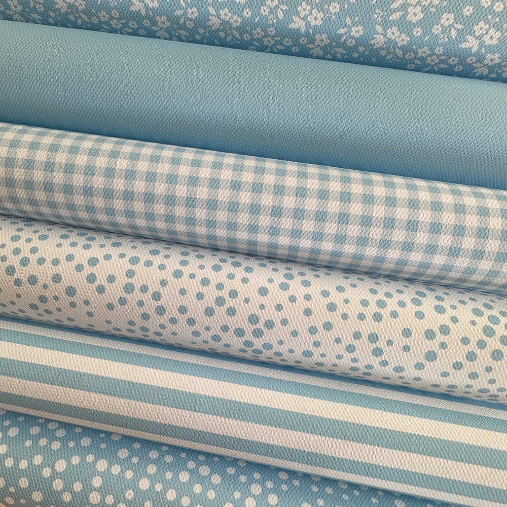 School light blue gingham solid stripe dots flower - faux Pu Leather vinyl - canvas - choose Fabric material Sheets